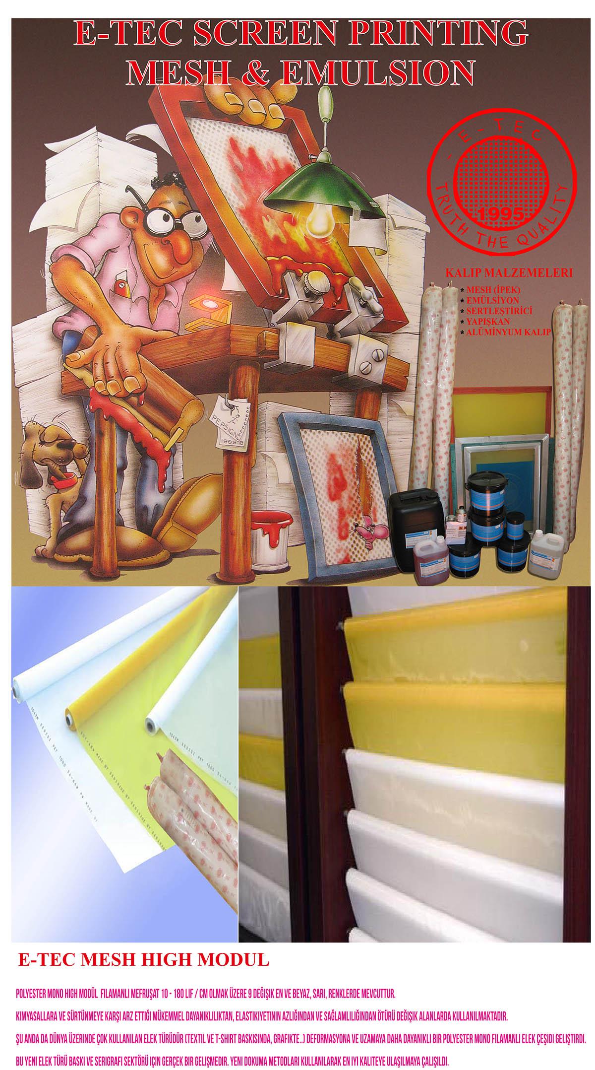 mono filamanlı elek çeşidi geliştirdi.Bu yeni elek türü Baskı ve serigrafi sektörü için gerçek bir gelişmedir. Yeni dokuma metodları kullanılarak en iyi kaliteye ulaşılmaya çalışıldı.